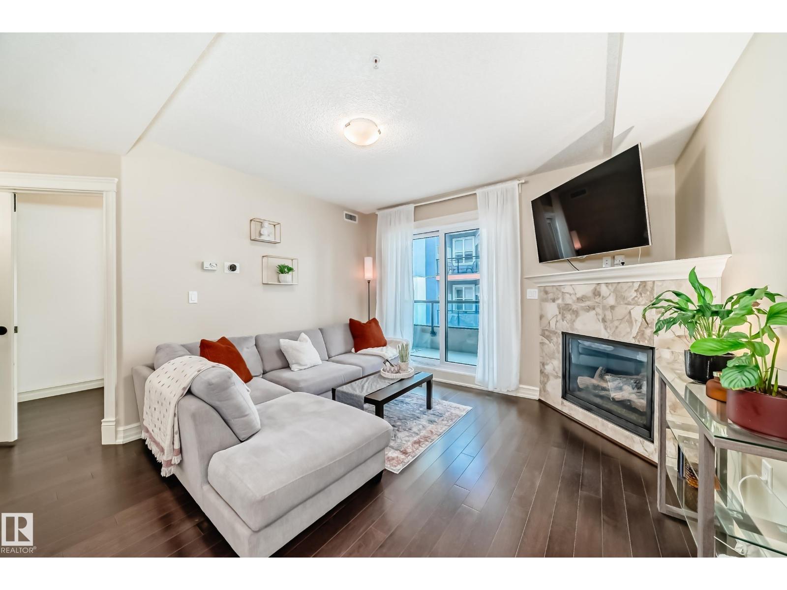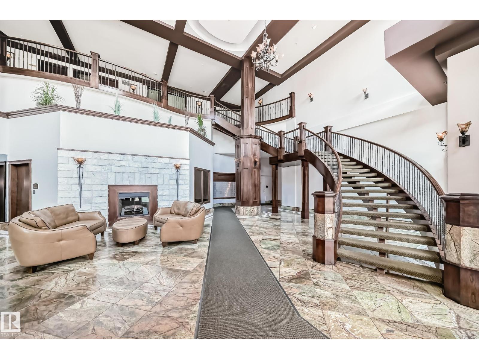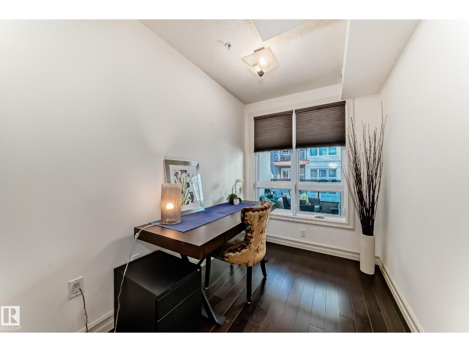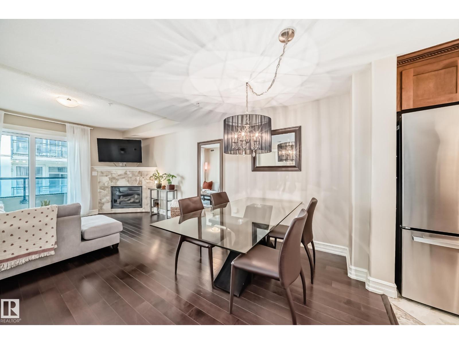 - Type: Rare spacious 2-STOREY in Meridian Plaza feels like a home instead of condo. The main floor; upgraded kitchen den & half bath. Upstairs is a large primary Bdr with walk-in closet en-suite spacious 2nd Bdr 4 pce bath with laundry. Features; hardwood granite gas fireplace gorgeous tile upgraded SS appliances lots of storage NEW Heat pump(2022) & A|C Hunter-Douglas black out blinds. Large west facing balcony with natural gas line to enjoy outdoor meals & long summer nights. 2 underground PARKING stalls included This is a building like no other with the amenities of a high end hotel rich foyer owner's lounge extra guest suite for visitors to stay business center gym social room & bike storage. Great location; shops entertainment dining Macewan parks River Valley Legislature U of A and transit nearby. Live in a upper-scale building with lots of amenities underground secure resident & visitor parking friendly environment and a beautiful space to make your own. A must see! (id-43741)