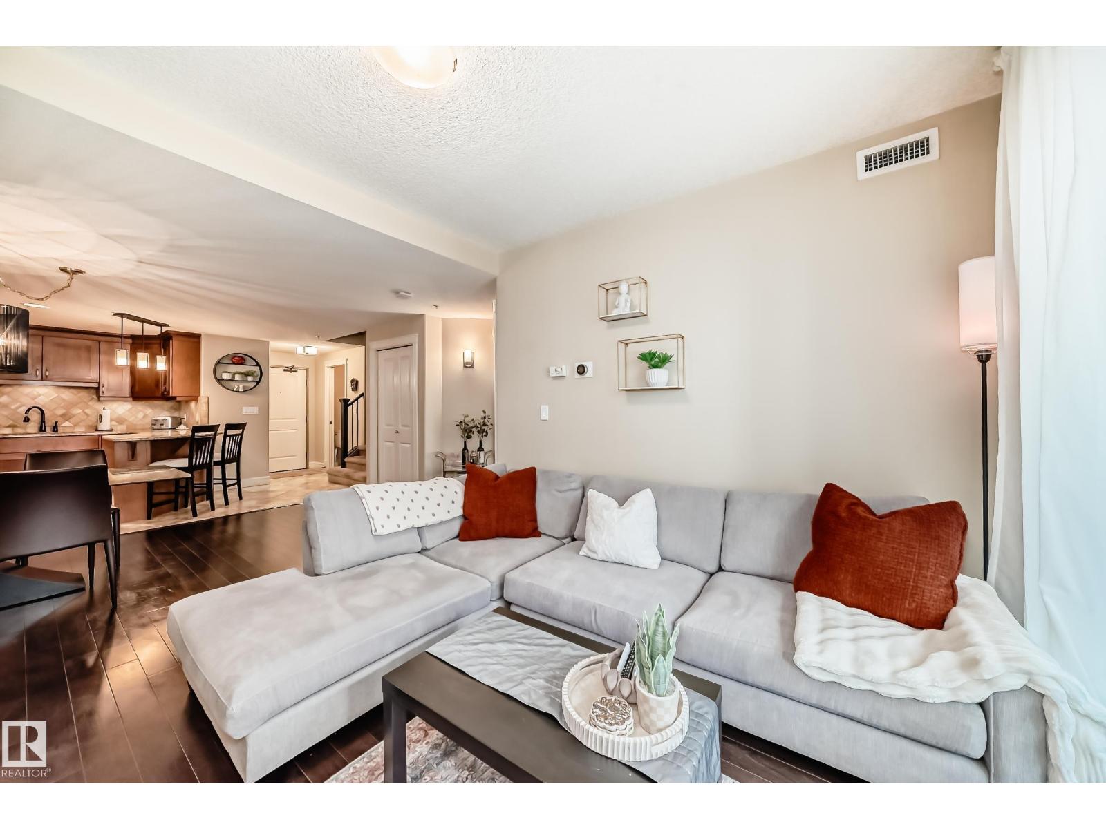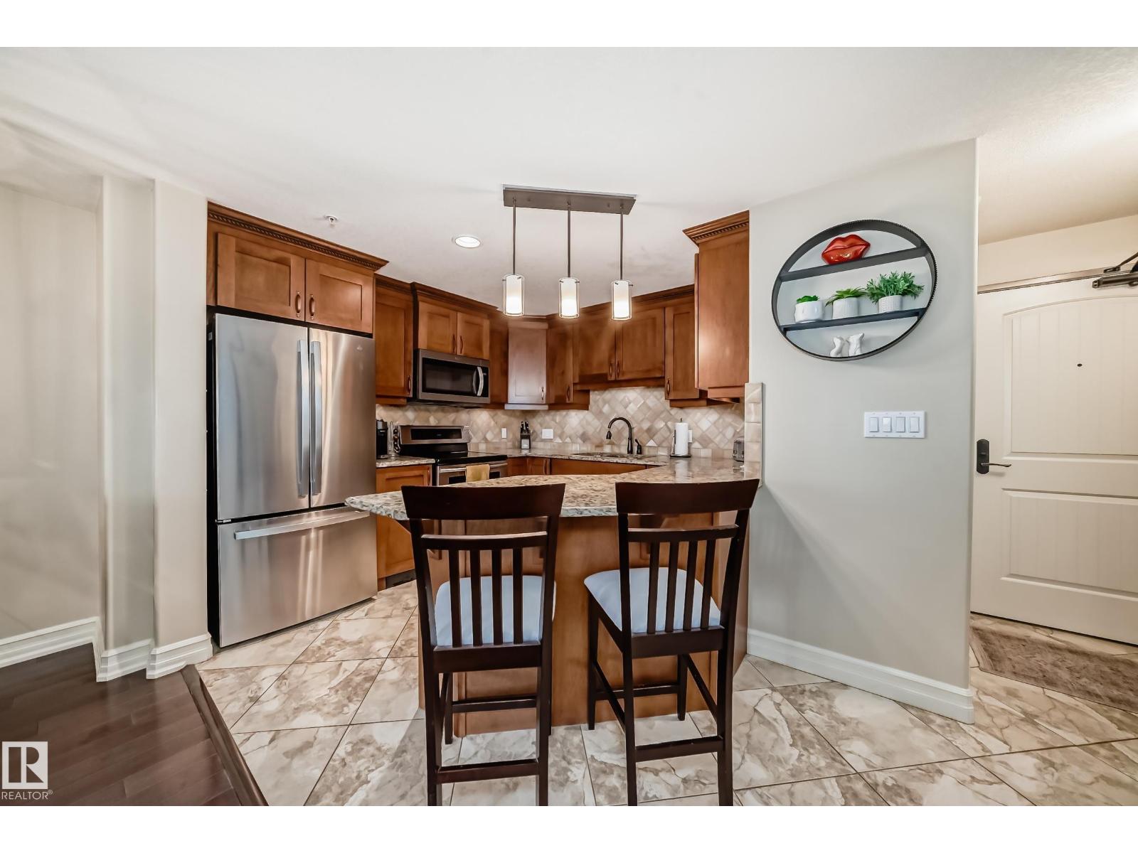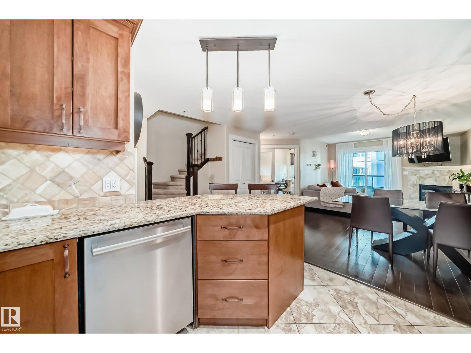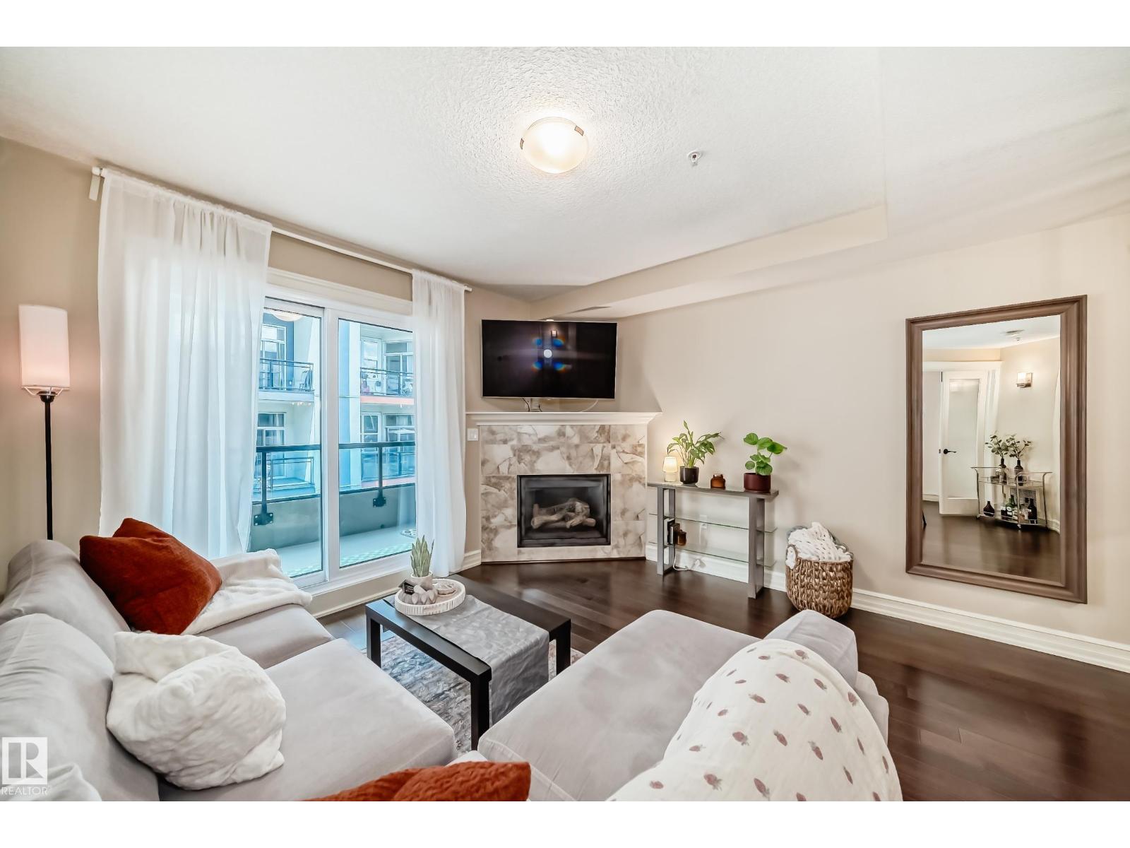 - Type: Rare spacious 2-STOREY in Meridian Plaza feels like a home instead of condo. The main floor; upgraded kitchen den & half bath. Upstairs is a large primary Bdr with walk-in closet en-suite spacious 2nd Bdr 4 pce bath with laundry. Features; hardwood granite gas fireplace gorgeous tile upgraded SS appliances lots of storage NEW Heat pump(2022) & A|C Hunter-Douglas black out blinds. Large west facing balcony with natural gas line to enjoy outdoor meals & long summer nights. 2 underground PARKING stalls included This is a building like no other with the amenities of a high end hotel rich foyer owner's lounge extra guest suite for visitors to stay business center gym social room & bike storage. Great location; shops entertainment dining Macewan parks River Valley Legislature U of A and transit nearby. Live in a upper-scale building with lots of amenities underground secure resident & visitor parking friendly environment and a beautiful space to make your own. A must see! (id-43741)